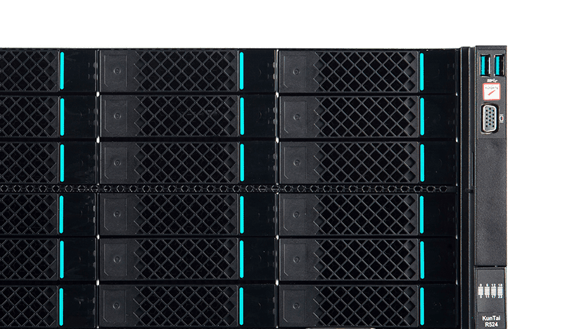 KunTai R524 存储型服务器是问鼎28数码基于鲲鹏处理器推出的新一代 ARM数据中心服务器。主要面向存储业务,具有海量存储、高性能、低功耗以及易扩展的特点,适合为大数据分析、软件定义存 储等应用场景的工作负载进行髙效加速。